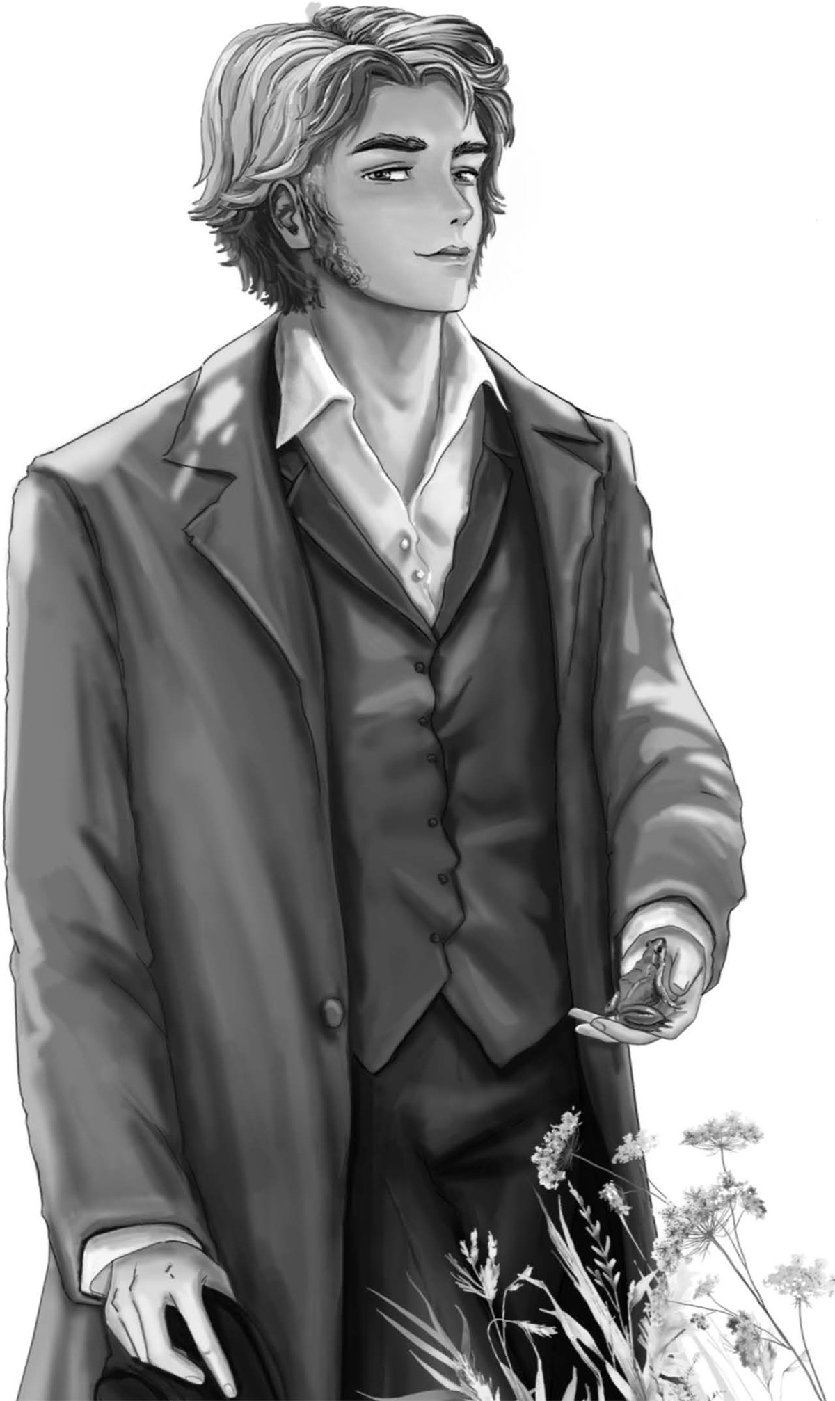 Тонкие губы Базарова чуть тронулись; но он ничего не отвечал и только приподнял фуражку. Его темно-белокурые волосы, длинные и густые, не скрывали крупных выпуклостей просторного черепа.