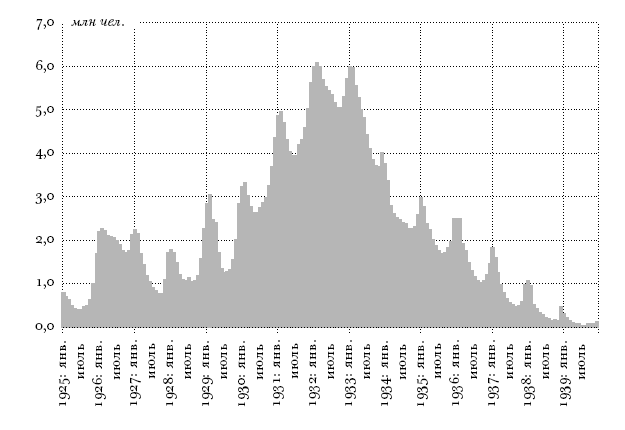 РИС. 1. Безработица в Германии в границах до 1938 г.