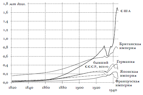 Рис. 1. Валовый внутренний продукт империй (паритет покупательной способности, в долларах 1990 г.)