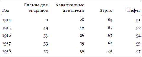 Таблица 1. Что покупали за доллары: доля закупок Соединенным Королевством материалов оборонного значения за рубежом, 1914–1918 гг., %