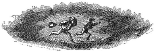 Tom got his lantern, lit it in the hogshead, wrapped it closely in the towel, and the two adventurers crept in the gloom toward the tavern. Huck stood sentry and Tom felt his way into the alley. Then there was a season of waiting anxiety that weighed upon Huck’s spirits like a mountain. He began to wish he could see a flash from the lantern – it would frighten him, but it would at least tell him that Tom was alive yet. It seemed hours since Tom had disappeared. Surely he must have fainted; maybe he was dead; maybe his heart had burst under terror and excitement. In his uneasiness Huck found himself drawing closer and closer to the alley; fearing all sorts of dreadful things, and momentarily expecting some catastrophe to happen that would take away his breath. There was not much to take away, for he seemed only able to inhale it by thimblefuls, and his heart would soon wear itself out, the way it was beating. Suddenly there was a flash of light and Tom came tearing by him: “Run!” said he; “run, for your life!”