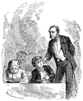 Just at this juncture the boy felt a slow, fateful grip closing on his ear, and a steady lifting impulse. In that wise he was borne across the house and deposited in his own seat, under a peppering fire of giggles from the whole school. Then the master stood over him during a few awful moments, and finally moved away to his throne without saying a word. But although Tom’s ear tingled, his heart was jubilant.