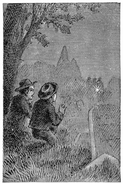 The boys bent their heads together and scarcely breathed. A muffled sound of voices floated up from the far end of the graveyard.