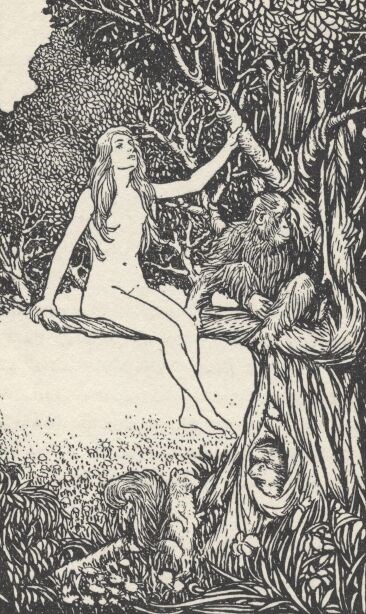 The Garden is lost, but I have found HIM, and am content. He loves me as well as he can; I love him with all the strength of my passionate nature, and this, I think, is proper to my youth and sex. If I ask myself why I love him, I find I do not know, and do not really much care to know; so I suppose that this kind of love is not a product of reasoning and statistics, like one’s love for other reptiles and animals. I think that this must be so. I love certain birds because of their song; but I do not love Adam on account of his singing – no, it is not that; the more he sings the more I do not get reconciled to it. Yet I ask him to sing, because I wish to learn to like everything he is interested in. I am sure I can learn, because at first I could not stand it, but now I can. It sours the milk, but it doesn’t matter; I can get used to that kind of milk.