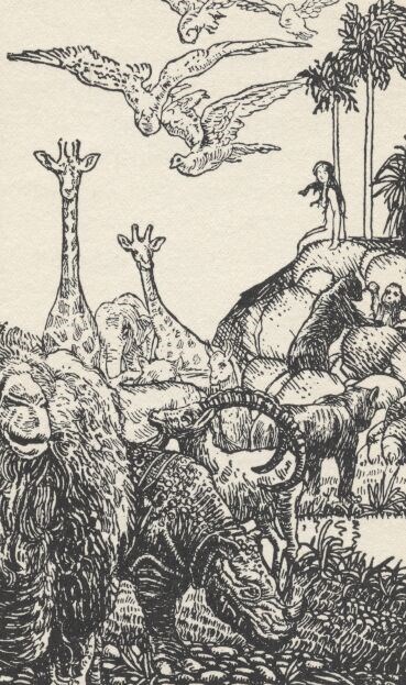 FRIDAY – I HAD to have company – I was made for it, I think – so I made friends with the animals. They are just charming, and they have the kindest disposition and the politest ways; they never look sour, they never let you feel that you are intruding, they smile at you and wag their tail, if they’ve got one, and they are always ready for a romp or an excursion or anything you want to propose. I think they are perfect gentlemen. All these days we have had such good times, and it hasn’t been lonesome for me, ever.