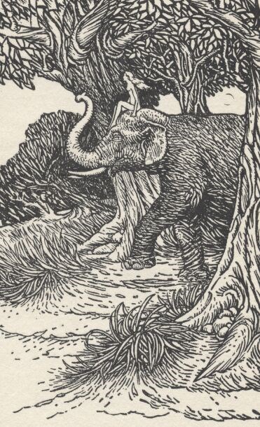 We have made long excursions, and I have seen a great deal of the world; almost all of it, I think; and so I am the first traveler, and the only one. When we are on the march, it is an imposing sight – there’s nothing like it anywhere. For comfort I ride a tiger or a leopard, because it is soft and has a round back that fits me, and because they are such pretty animals; but for long distance or for scenery I ride the elephant. He hoists me up with his trunk, but I can get off myself; when we are ready to camp, he sits and I slide down the back way.