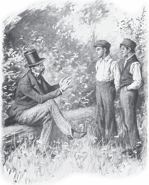 После этого мы пошли по дороге, навстречу работникам Никерсона, которые тотчас же стали расспрашивать нас, что за незнакомец разговаривал с нами, откуда он пришел, как его зовут, какой он религии и каковы его политические убеждения, короче говоря, задавали нам те вопросы, которые всегда задают люди при виде какого-нибудь нового лица. Но Том сказал, что этот человек глухонемой и что знаки, которые он делает руками, и его мычание совершенно непонятны. Мы остановились, чтобы посмотреть, как будут работники Никерсона объясняться с Джеком, потому что мы очень тревожились за него, и Том сказал, что пройдет много дней, прежде чем Джек научится не забывать, что он глухонемой. Убедившись после нескольких минут наблюдения, что Джек играет свою роль хорошо, мы пошли дальше и решили посетить школу, которая была в трех милях расстояния.