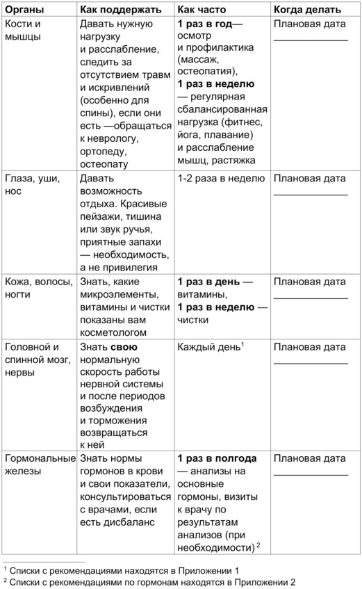В чек-листе сгруппированы основные органы ощущений и описаны способы поддержки их нормального функционирования. Определите плановые даты и периодичность действий, которые будут оптимальны в соответствии с вашим жизненным ритмом.