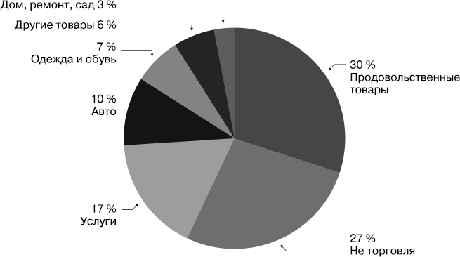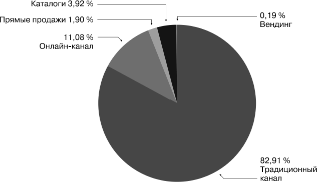 Дальше (помним о второй составляющей торговли – интерфейсе) «розничные деньги» будут разделены по каналам – этой теме посвящен следующий параграф данной главы – по-разному, в зависимости от товарного класса. Если, к примеру, в продуктах питания процент интернет-продаж в настоящее время незначителен, то, скажем, в бытовой технике или электронике доля онлайн-канала (по состоянию на 2019 год) равна 25 %[85] и постоянно растет.