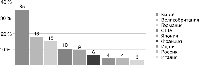 Признанным лидером онлайн-коммерции в мире является Китай, далее с большим отрывом следуют Великобритания, Германия, США и Япония.