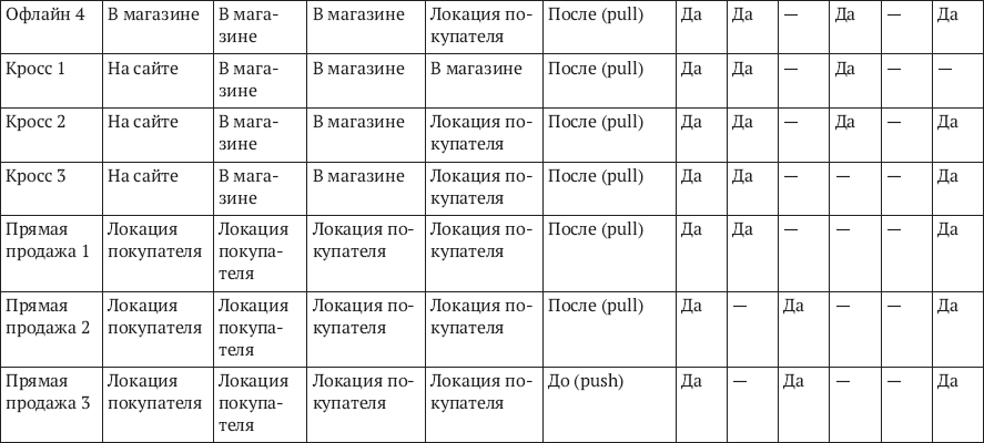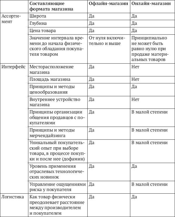 Таблица 2.2. Составляющие формата магазина, офлайн и онлайн, применимость для различных каналов продаж