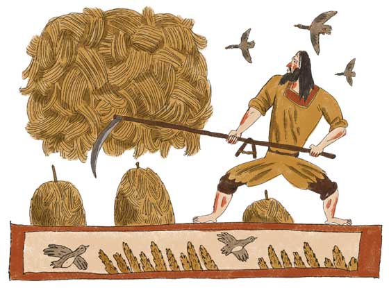 – «…Если ему будет приказано молотить, то за один рабочий день Джон Литтль должен обмолотить двадцать четыре снопа пшеницы или ржи или тридцать снопов ячменя…»