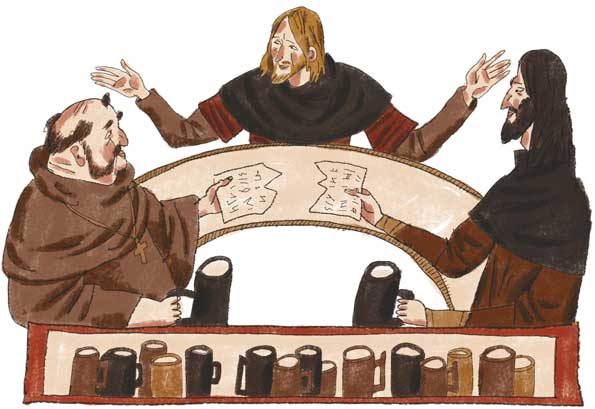 Посреди грубого дубового стола стоял пузатый бочонок, окружённый недопитыми ковшами из воловьего рога. Почерневший деревянный Христос терпеливо смотрел со своего креста на отца Тука, перебиравшего струны лютни.