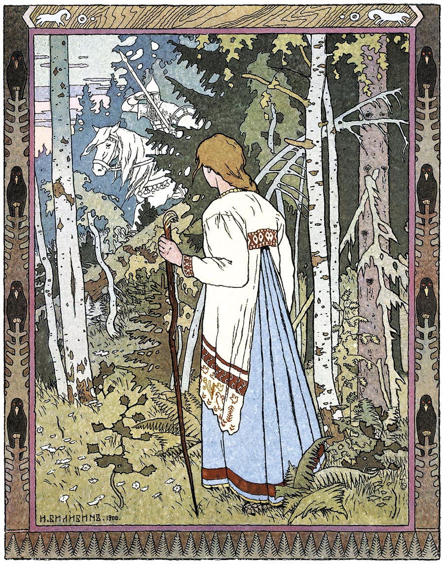 Василиса собралась, положила куколку свою в карман и, перекрестившись, пошла в дремучий лес.
