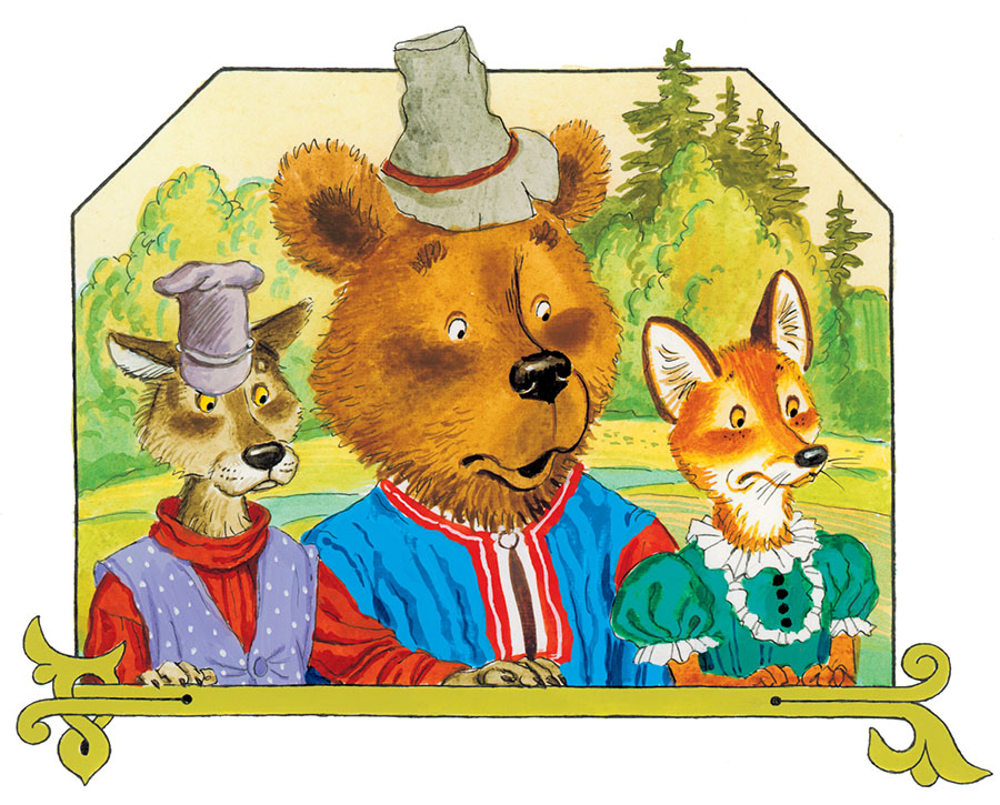 Стоит медведь за пнём, волк на прогалине, лиса по кустам шныряет.