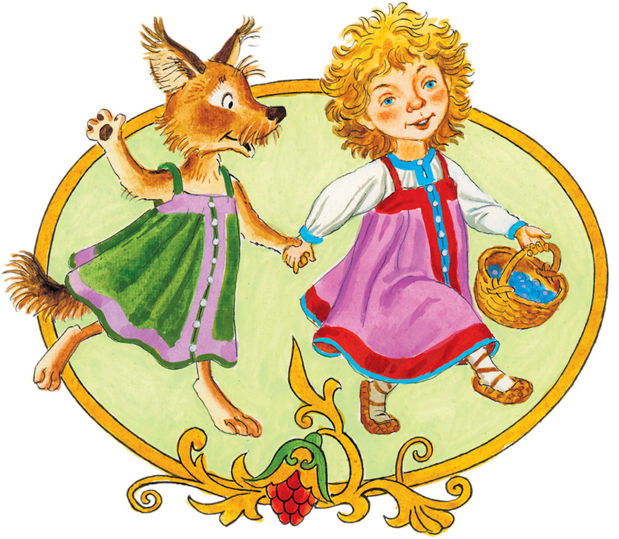 Несёт меня лисаЗа тёмные леса,За быстрые реки,За высокие горы…Кот и дрозд, спасите меня!..Кот и дрозд услыхали, бросились в погоню. Кот бежит, дрозд летит… Догнали лису – кот дерёт, дрозд клюёт, и отняли петушка.