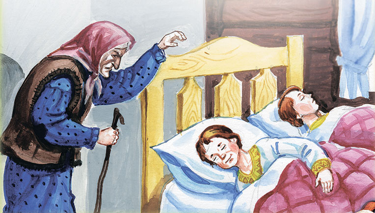 «Что же это всё один голос?» – подумала ведьма, отворила потихоньку дверь, видит: оба брата спят крепким сном. Тотчас обвела их мёртвой рукой – и они померли.