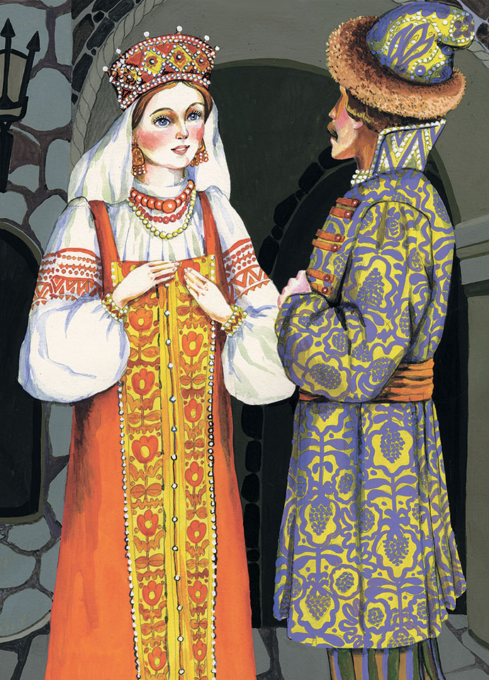 И приказал царь трём своим сыновьям, чтобы завтра явились к нему на пир вместе с жёнами.
