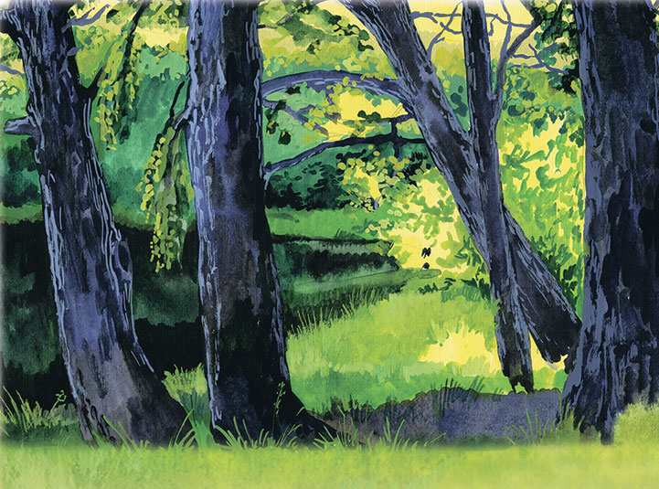 Он бросил щуку в море, пошёл дальше берегом. Долго ли, коротко ли, прикатился клубочек к лесу.