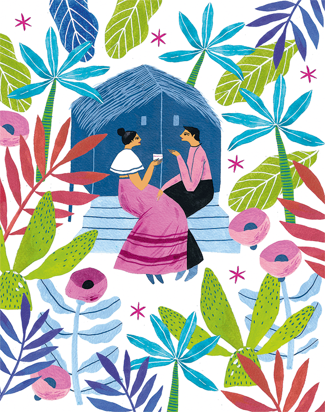 Минокичи жил неподалёку и предложил Юки отдохнуть в прохладной тени своего сада.