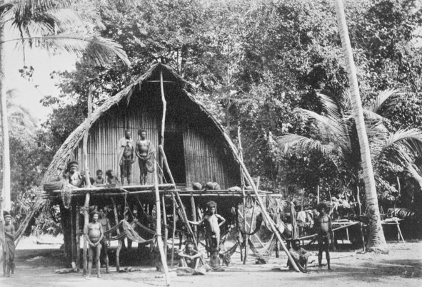 Это были обычные большие селения с изобилием кокосовых пальм, с десятком или более соломенных хижин на сваях, окруженных заборами, чтобы не пускать диких свиней и не выпускать домашних. Известие о нашем прибытии неизменно опережало нас на много часов, так что почти везде деревенский констебль, одетый в бросающуюся в глаза форму (на фоне голых соплеменников) и с медным служебным знаком, свисавшим с шеи на цепочке, всегда был готов приветствовать нас.