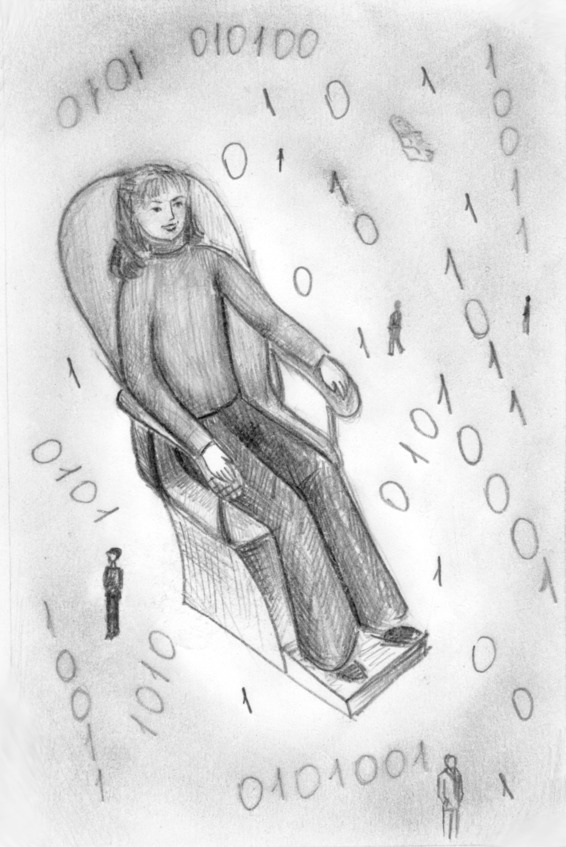 Коридоры, лестницы, двери и опять коридоры, коридоры, коридоры. Вдруг, в очередной раз, повернув за угол коридора, они увидели знакомую обстановку. Саша даже не поверила своим глазам. Их кресла для путешествия. Она подбежала к своему креслу, погладила спинку, подлокотники.