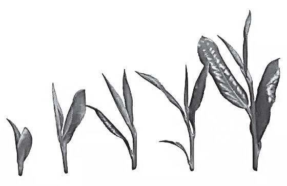 Чайные листья с короткими чайными побегами обычно вырастают в зарослях кустарников или в густой траве. На одной ветке часто вырастает три, четыре или пять молодых побегов, в таком случае следует выбирать для сбора наиболее хорошо развитые молодые побеги44.