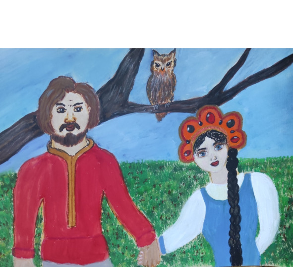 Где-то жили, где-то были,Вместе травушку косили,Вместе сено продавали,Вместе денежки считалиДвое братьев.Старший братРаз нашёл на поле клад.Братья деньги поделили,Избу новую срубили,Приоделись, как смогли,Да купили клок земли.На двоих землицы мало,Старшего женить пристало.И сказал тогда меньшой:«Будешь жить ты тут с женой.Я по свету погуляю,Да со счастьем поиграю.Он недолго собирался,В тот же вечер отправлялся.Шёл он день, и два, и три,И видал он три зари.Утомился он в дорогеИ прилёг – не держат ноги!Манит мягкая трава.И… проспал часа он два.Вдруг, явились две девицы,Две красотки – прям царицы!Вот одна и говорит:– Кто под деревом здесь спит,Скоро, сил не тратя зря,Сменит батюшку – царя.А вторая рассмеялась:– Ты ведь часто ошибалась!– Не ошиблась я сейчас.– Ой, смотри, открыл он глаз!И девицы вмиг исчезли,Будто не было их тут.Вскрикнул Ваня:– Вот так шут!(Младшего Иваном звали,Не сказала я вначале).Посмотрел, подумал. ВотОн решил идти вперёд.Только сделал два шага —Перед ним баба Яга:– Парень, далеко ль идёшь?Ваня ей:– А ну, не трожь!А она и говорит:– Что-то больно ты сердит.Помоги в беде хоть малость:У меня изба сломалась.– Так и быть, уж помогу,Починю твою избу.Починил Иван избу.– Дров наколешь?– Что ж, смогу!– Ты коли, милый, коли,Да и печку побели.Я ж отправлюсь отдыхать,Буду в городе гулять.Ваня думает: «Хитра!Отдыхала и вчера.Я пойду за ней вослед.Что ж, дурак я или нет?!Тоже город погляжу,Средь народа покружу».Вот и город, наконец,У ворот сам царь – отец.Он сидит совсем не весел,И головушку повесил.Что случилось? Что случилось?Да царевна отлучилась,Отлучилась из дворца,Не послушалась отца.Не нашли её покуда,А царю от горя худо.Кто царевну ту найдёт,В жёны тот её возьмёт.Ищут всюду царску дочь,Всяк жениться бы не прочь!«Всё равно мне быть царём,Отыщу её потом.Зря, что ль вещий сон мне снился?!»И Иван наш воротился,Переделал все дела.Тут и ведьма появилась,Быстро в горницу вошла,Поплевалась, покружиласьИ на печку залегла.Ваня тихо помолился,Лег на лавку. И приснилсяВскоре Ване дивный сон.В нём царевну видит он:Губки алы, как малина,Щёчки, словно апельсины,Глазки – светлая вода,Бровки чёрны, хоть куда,Волосы – земли чернееС каждым мигом всё длиннее.Ваня к деве потянулся….И тотчас же он проснулся.Вдруг услышал Ваня стон.«Господи! – подумал он.-Интересно, кто же плачет?Женский голос, не иначе.Может, я пришёл не зря,Здесь, наверно, дочь царя!?»Вышел Ваня наш во дворПотихоньку, словно вор.Видит – столб посредь двора,Всё, как будто, как будто, как вчера:На столбе сова сидитИ кого-то сторожит.– Что сидишь ты, не летаешь?Кто тут спрятан, верно, знаешь?Чей я слышал плач и стон?Это явь была. Не сон!Уж не царска ли девицаВ подземелье здесь томится?!– Ничего б я не сказала, —Птица Ване отвечала, —Но от злости вся дрожу,Про обиду расскажу:Честно ведьме я служила,Чем, не знаю, досадила,Видно стала я стара.Обо мне она забыла,Не поила, не кормилаНи сегодня, ни вчера!Тут Иван скорей краюхуИз-за пазухи достал,Раскрошил и птице дал.– Ты сыта ль? – спросил он птицу.-Хочешь пить? Так я водицыПринесу из родника.– Хватит, я сыта пока.И за то тебе награда.Услужить, Иван, я рада.Там у дерева кривогоНабери листа сухого,Дымом ведьму окури,Под подушкой ключ бери,Да иди скорей в темницу,Отпирай свою девицу!Прокричу когда три раза,Вы тогда бегите сразу.Да не мешкайте нигде,А иначе бы