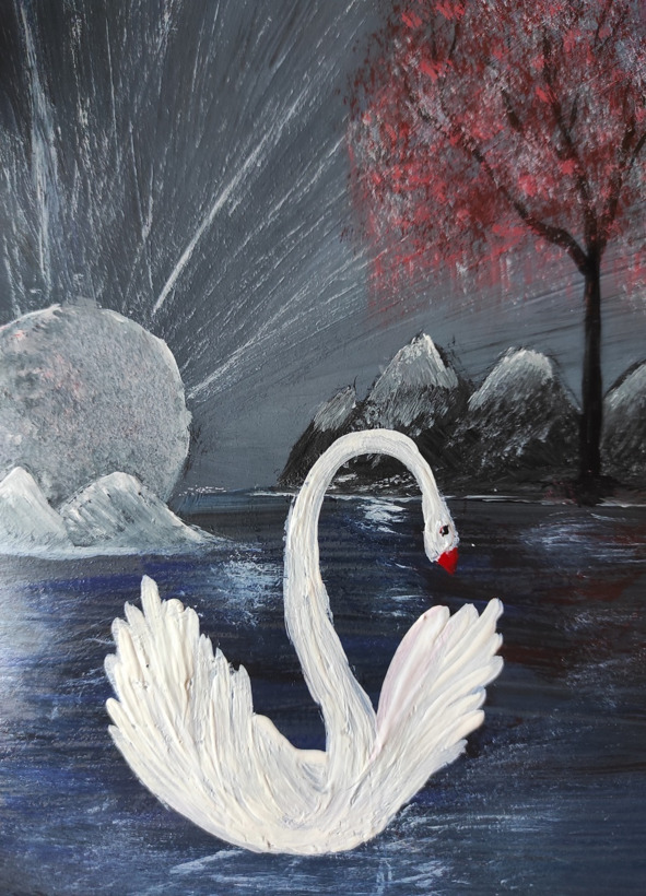 «Бом!» – замер двенадцатый удар часов на башне. Гусь со слезами на глазах низко опустил голову. Вдруг, он увидел своё отражение. У него были белоснежные перья и длинная красивая шея. Он стал прекрасным и свободным! Он превратился в лебедя! И другие лебеди подплыли к нему, окружили его и стали танцевать свой волшебный танец.