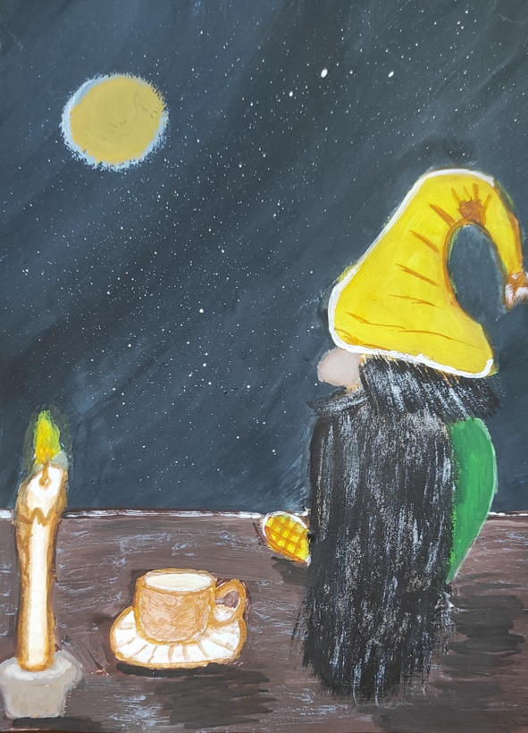 Долго-долго он полз и когда выбрался на поверхность, то очутился в лесу. В небе сияла луна, а где-то далеко-далеко начали бить часы: «Бом-бом-бом!»