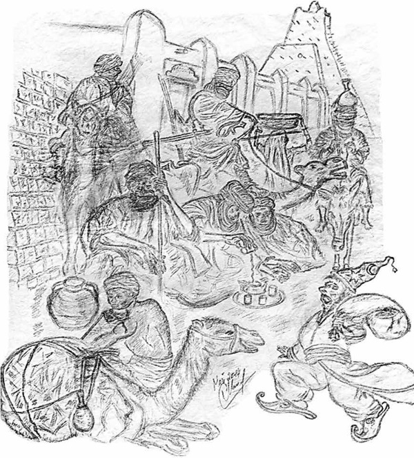 Радуясь возможности отдохнуть и вдоволь насладиться всеми прелестями городской жизни после изнуряющего путешествия по пескам Сахары, Аль-Мажнун, пройдя сквозь городские ворота, не задумываясь повел свой караван в сторону городского рынка.