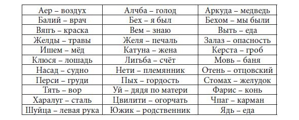 Если образно сравнить любой язык с жилым домом, то каркас здания и несущие стены – это структура предложений языка, перегородки и мебель – это структура слов, а вот одежда и всякая утварь – это лексемы слов, такие же переменчивые, как сама мода на эти вещи. Их можно с легкостью дарить или выбрасывать, затем приобретать другие. Лексика меняется постоянно и очень быстро, поэтому за период в тысячи лет язык айнов наполнился на 99% новыми словами в результате заимствований (так же, как мы сейчас уродуем русский язык «американизмами», всякими там «респектами», «фейками» и прочей дрянью), с появлением новых предметов и явлений возникают новые слова (неологизмы). А вот остальные – окказионализмы (имеющие автора). Если составить очень краткий древнерусский словарь, то можно очень удивиться, что за каких-то пару столетий слова изменились до неузнаваемости: