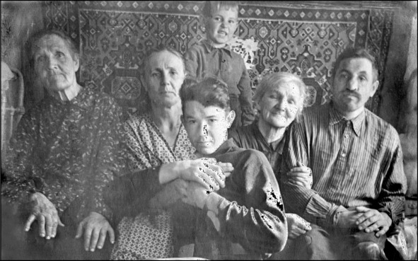 Слева направо: бабушка Оля, мама, я, Серёжка, бабушка Фрося, Филипп Васильевич.