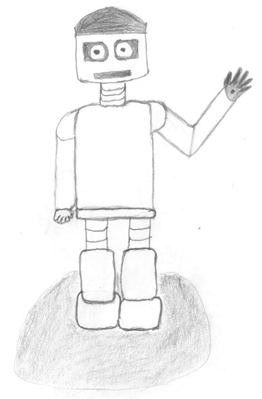 „Sprich langsam Peter, ganz langsam“, forderte Johann den Jungen auf. Aber Peter war so aufgeregt, dass er immer schneller wurde und schließlich stotterte. Darauf nicht programmiert, begann der Kopf des Roboters zu glühen. Johann begoss ihn mit Wasser.