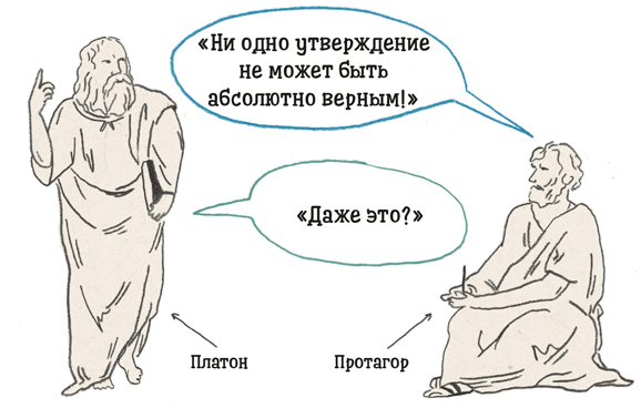 Казалось бы, довольно сложно спорить с релятивизмом, и похоже, что вы не выиграете битву за термостат. Однако у релятивизма бывают степени. Протагор выдвигает убедительные аргументы против абсолютизма – представления, что нет ничего относительного, что дело не в субъективных точках зрения и что всегда есть верный или неверный ответ. С другой стороны, есть радикальные релятивисты, которые настаивали бы, что относительно вообще все – даже если бы это значило, что нужно принять некоторые этически отвратительные взгляды за правомерные точки зрения.