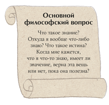 Все зависит от того, что вы знаете, и от того, что вы думали, что знаете. Чтобы в этом разобраться, лучше всего обратиться к Сократу (ок. 469–399 гг. до н. э.), которого Дельфийский оракул признал мудрейшим человеком в Афинах. Потому что он не знал ничего. И, что еще важнее, он знал, что ничего не знает. Вместо того чтобы рассказывать всем о своих знаниях, он ходил и расспрашивал других, что знают они. А потом он выяснял, откуда они знают, что они знают то, что, как они думают, знают (вас предупреждали, что это будет нелегко). И почему они думают, что это правда: была ли это простая убежденность или они действительно это знали?