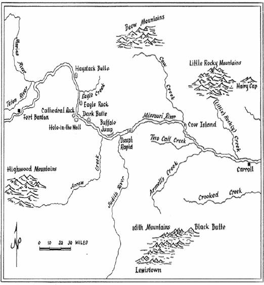 Пока Сах-не-то собирала ягоды, я спугнул стайку цыплят и подстрелил трёх из них из своего охотничьего ружья, прежде чем они успели улететь за пределы досягаемости. Затем мы снова поднялись на борт и продолжили наше путешествие. В полдень мы прибыли к устью реки Мариас, в двадцати двух милях от форта Бентон. Это та самая река, которую Льюис и Кларк считали главным руслом Миссури и по которой они шли некоторое время, пока не убедились в своей ошибке. Это большая река, протекающая по огромной территории горной страны, её основными притоками являются река Срезанных Берегов, Двух Талисманов, Барсучий, Берёзовый и Дюпюйер. Все они начинаются в твердынях Скалистых гор и питаются вечными льдами и снегами более высоких хребтов. Мы высадились на сухой песчаной отмели в устье реки и пообедали, запивая завтрак большими глотками прохладной, но слегка мутноватой воды.