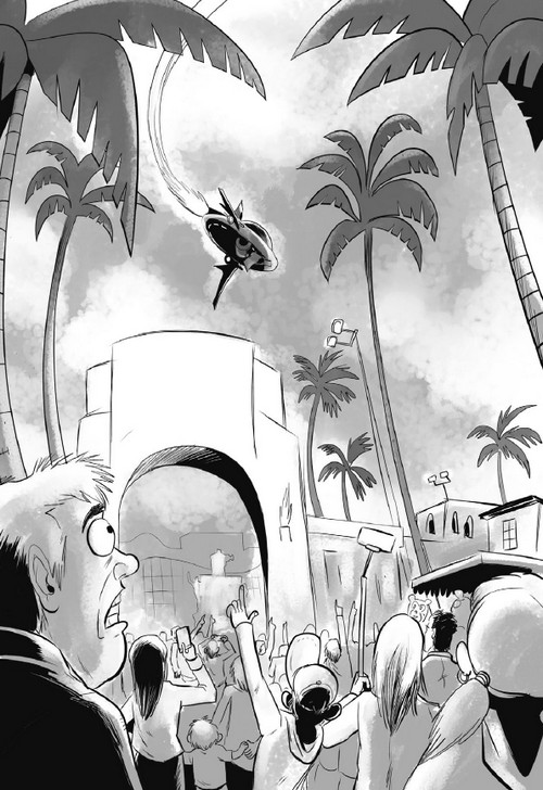 Когда мой корабль навис над толпой, люди стали разбегаться в разные стороны, стараясь укрыться от жара и нисходящего потока воздуха. Так бросаются врассыпную огромные красные песочные жуки при столкновении астероидов. Ну, вы знаете, как это бывает.