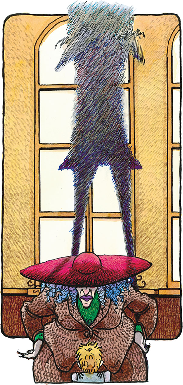 Уховёртка еле успела шёпотом предостеречь Костадо: «Не забудь скосить глаза, как я тебя учила!» – и тут в столовую следом за миссис Бриггс вошла очень странная пара. Уховёртка видела, что они изо всех сил стараются выглядеть нормально, но сразу поняла, что нормальными их не назовёшь. Даже близко. У женщины один глаз был карий, другой голубой, а лицо помятое и рыхлое. Несимпатичное лицо. Женщина хотела сделать его посимпатичнее и для этого завила волосы и подкрасила их голубым, а губы густо намазала фиолетовой помадой. Это совсем не сочеталось ни с коричневым твидовым костюмом, ни с ярко-зелёным свитером. И всё вместе совсем не сочеталось с большой красной шляпой и небесно-голубыми сапожками на высоких каблуках.
