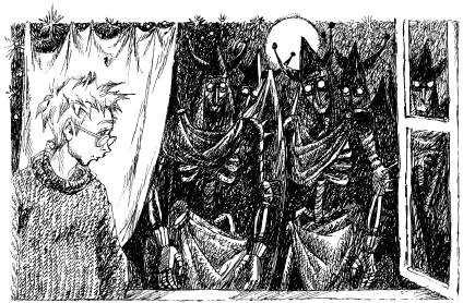 – Позвонил в службу спасения, – убитым голосом отозвался Эйдан. – Больше ничего в голову не пришло. Когда приехала «скорая», Преследователи исчезли. А потом я их увидел только возле дома Аркрайтов, когда на тот, первый отряд напали еще два. Это было через день. Наверное, дело в том, что до тех пор я в основном сидел в кабинете социального работника и все друг другу звонили и выясняли, куда меня деть, вот Преследователи и не могли до меня добраться. Понимаете, зайти в дом они не могут.