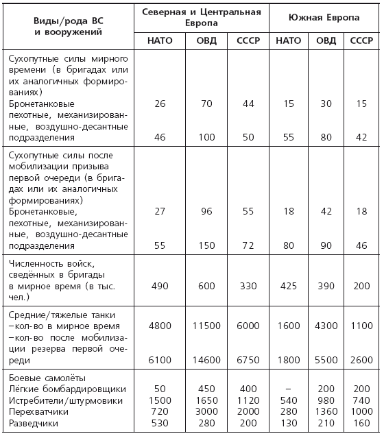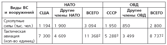 Соотношение сил и вооружений в Европе (по оценкам Международного Института стратегических исследований в Лондоне по состоянию на 1968 г.) (без ВМС и стратегических вооружений)[620]