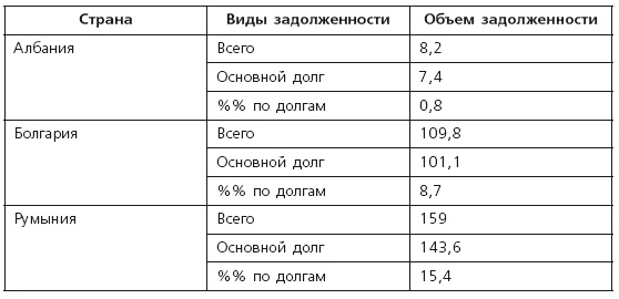 Долг Балканских государств-членов ОВД за военные поставки из СССР в млн советских рублей на 1961 г.[182]