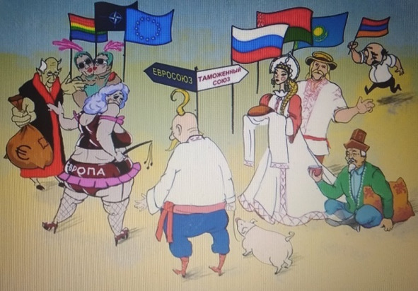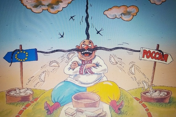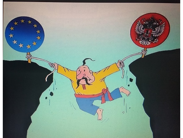 Хохол над пропастью весит. За кого бы, Россию или Европу, он не держался, всё равно он, в пропасть – улетит!