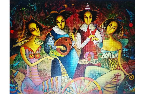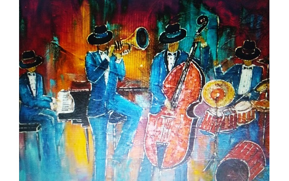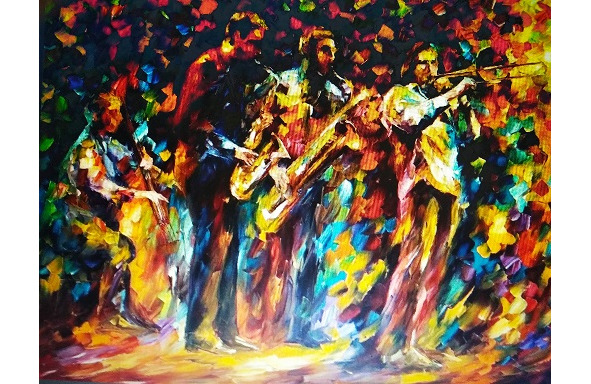 Картина прекрасна, краски живы. И девушки музыканты, очень – красивы!