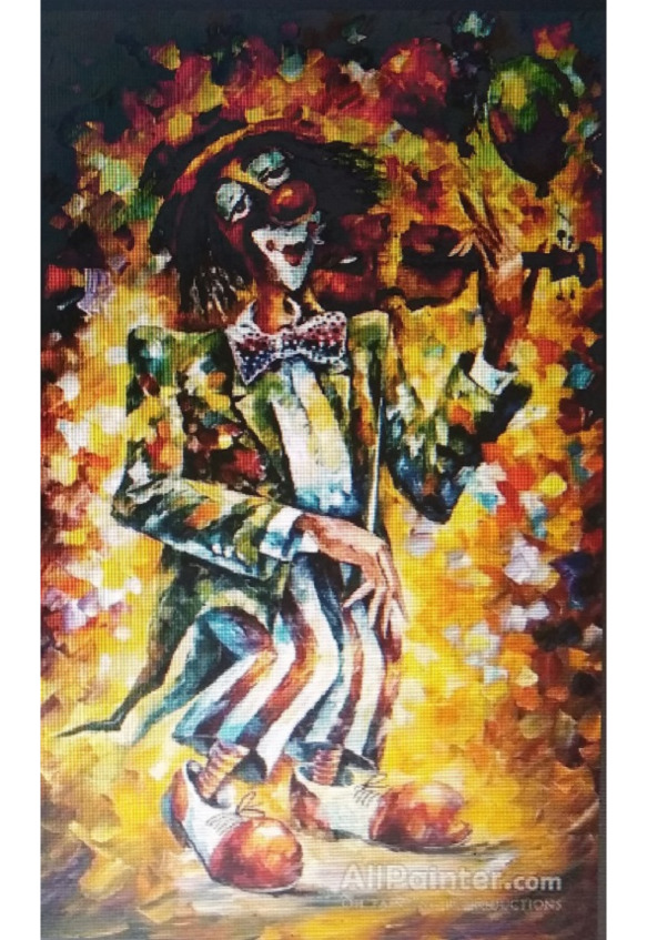 Весёлый клоун на скрипке играет. – Его музыка всех радует и забавляет!