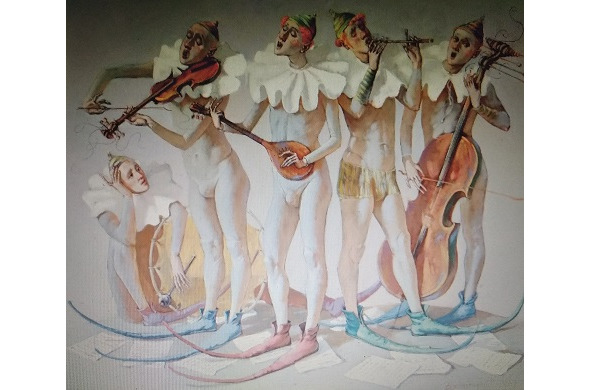 Музыку свою играют девушки обнаженные. – Многие посетители у этой картины, стоят – заворожённые!