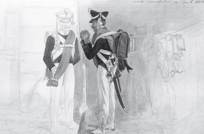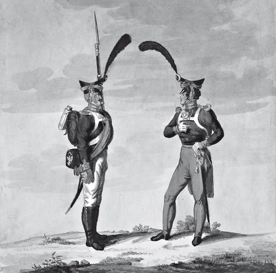 Егерь и унтер-офицер егерского полка. Л. И. Киль. 1819 г.