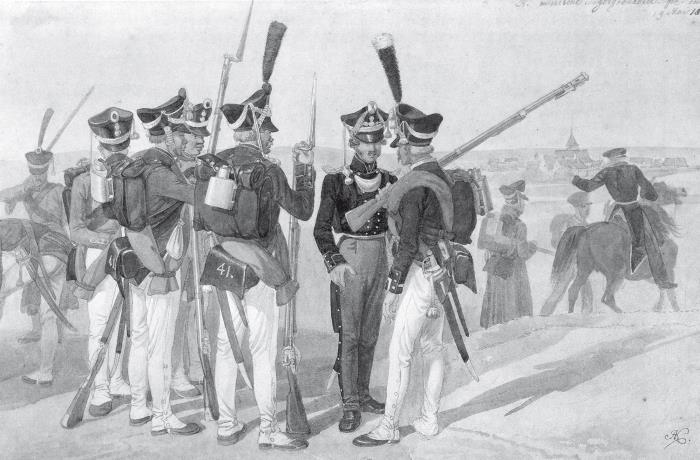 Гренадеры, егеря, унтре-офицер и обер-офицер 41-го егерского полка.