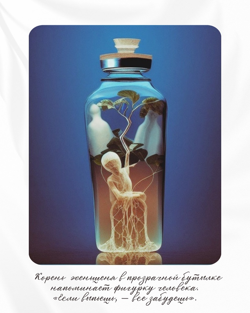 Данко показывает мне на бутылку, которая уже пару дней стоит на телевизоре. Это настойка с корнем женьшеня. Корень этот в прозрачной бутылке напоминает фигурку человека. «Если выпьешь, – все забудешь».