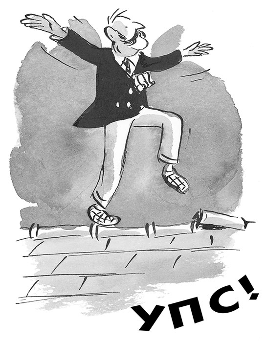 Но в ту же секунду старый летчик без малейшей суеты ухватился за кровельный желоб и остановился.